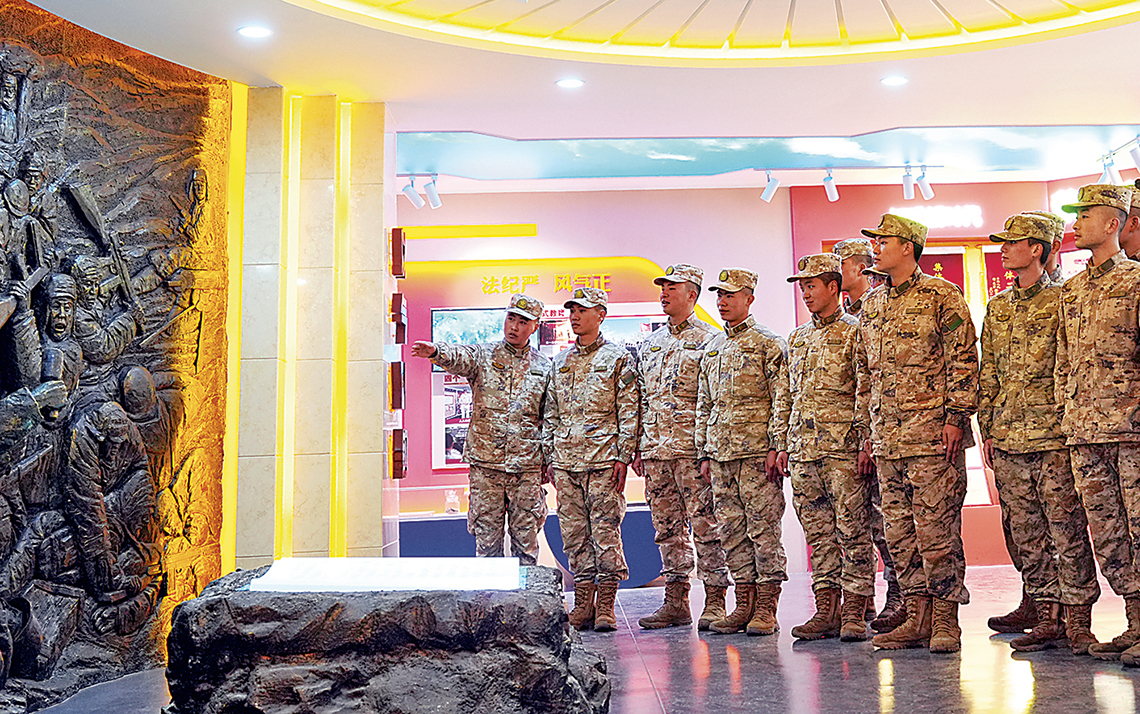 第81集团军某旅“松骨峰特功连”组织官兵参观连史馆(资料照片)。何鹏刚摄