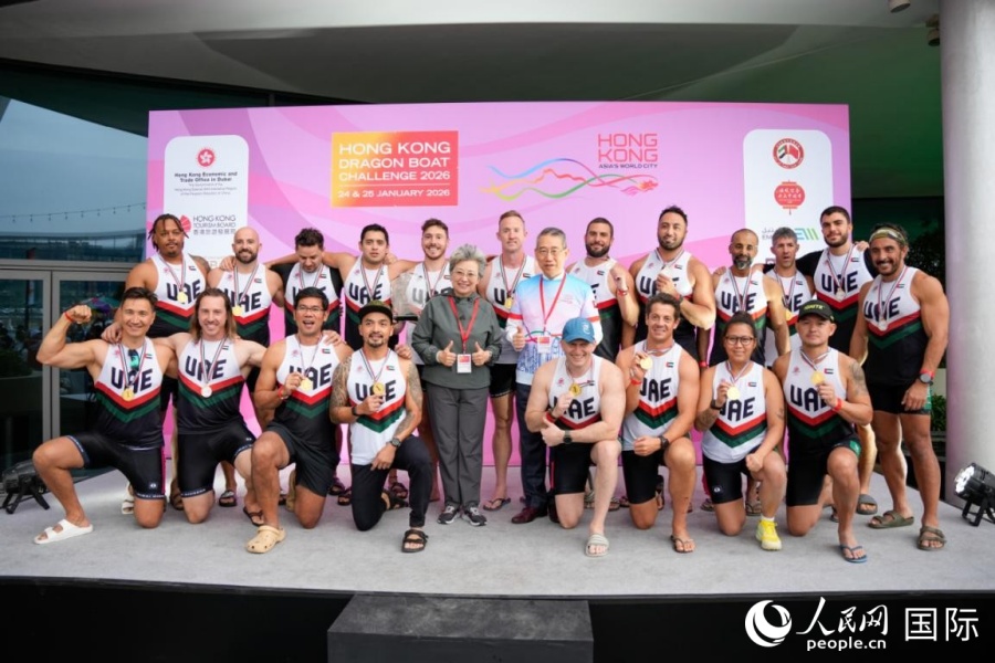 人民网迪拜1月26日电(记者张志文)1月24日至25日,2026香港龙舟挑战赛在迪拜河成功举办,中国驻迪拜总领事欧渤芊、香港特别行政区政府驻迪拜经济贸易办事处处长陈尚文出席。 欧渤芊在致辞中表示,本届龙舟赛组织专业、参与广泛,不同国籍和文化的健儿飞桨逐浪,生动诠释了同舟共济、团结互助的龙舟精神,也拉开了2026“温暖迎春·共庆中国年”系列活动序幕,期待各界积极参与,共同迎接欢乐祥和的马年新春。