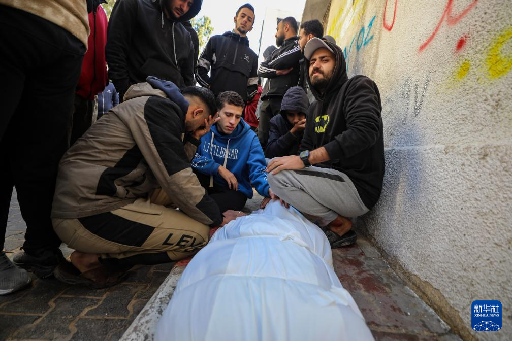 2月4日,在加沙城希法医院里,民众悼念遇难者。 据巴勒斯坦通讯社4日报道,当天以色列军队炮击和空袭加沙地带多地,造成包括4名儿童在内的至少18人死亡、多人受伤。