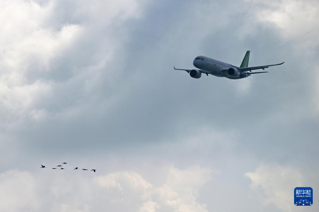 2月1日,在新加坡樟宜展览中心举行的新加坡航展媒体预演上,一架中国商飞的C919飞机进行飞行表演。 2月1日,第十届新加坡航展在新加坡樟宜展览中心举行媒体预演。